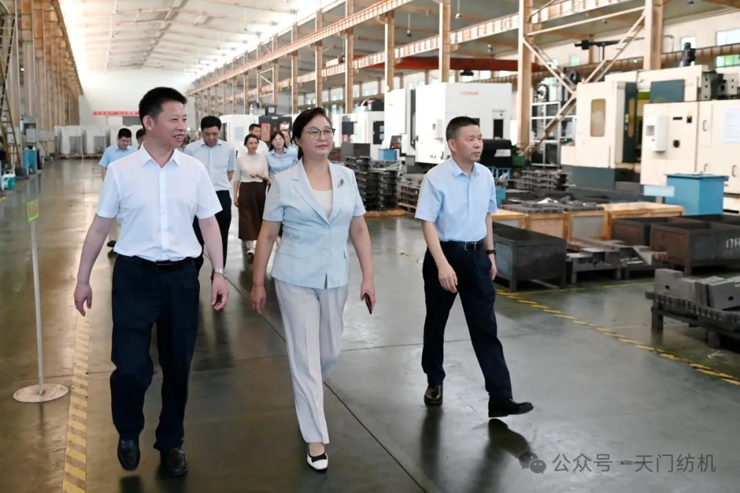 王玲主任一行深入天門紡機生產(chǎn)車間,考察企業(yè)運行情況。沈方勇董事長向王玲主任重點介紹了近幾年開展“智慧工廠”建設、推進數(shù)字化轉(zhuǎn)型和智能化改造的總體思路及工作進度。