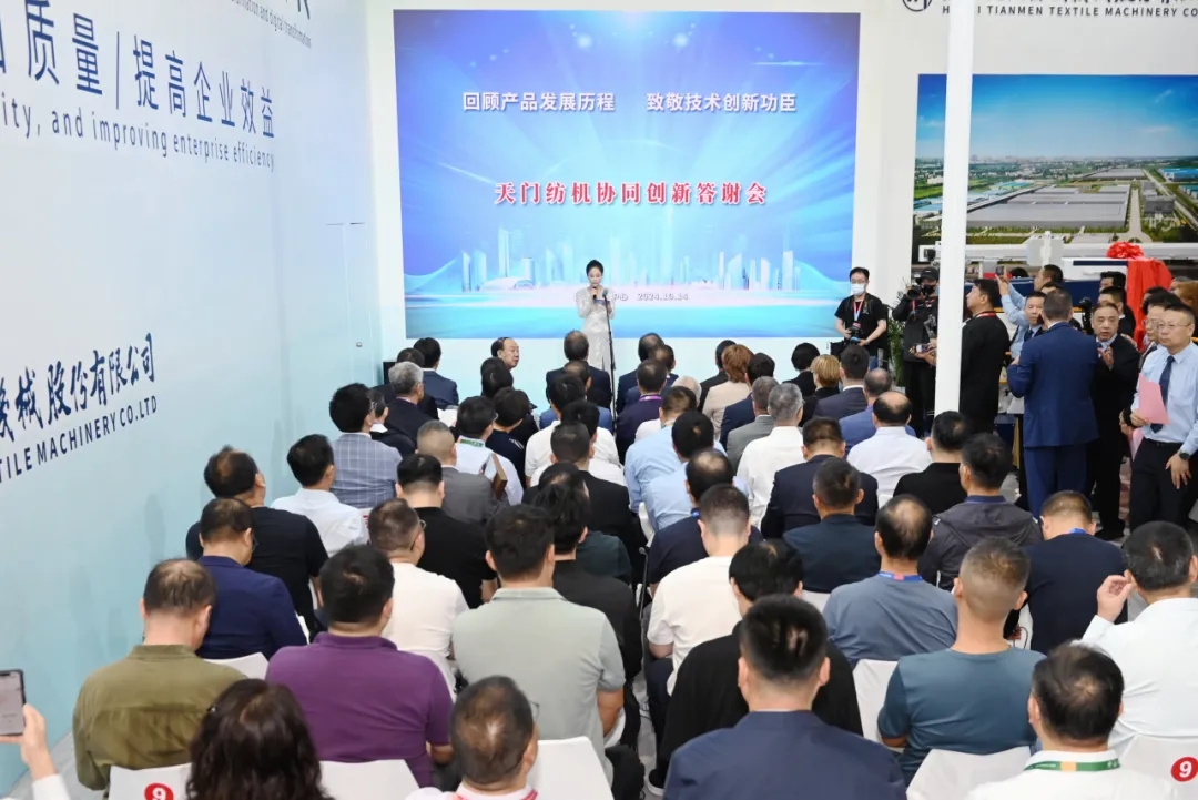 2024年10月14日上午,金秋上海,繁華與靜謐交織,美輪美奐。籍2024中國國際紡織機(jī)械展覽會(huì)暨ITMA亞洲展覽盛大開幕之機(jī),天門紡機(jī)舉辦了以致敬協(xié)同創(chuàng)新功臣為主題的答謝會(huì)。