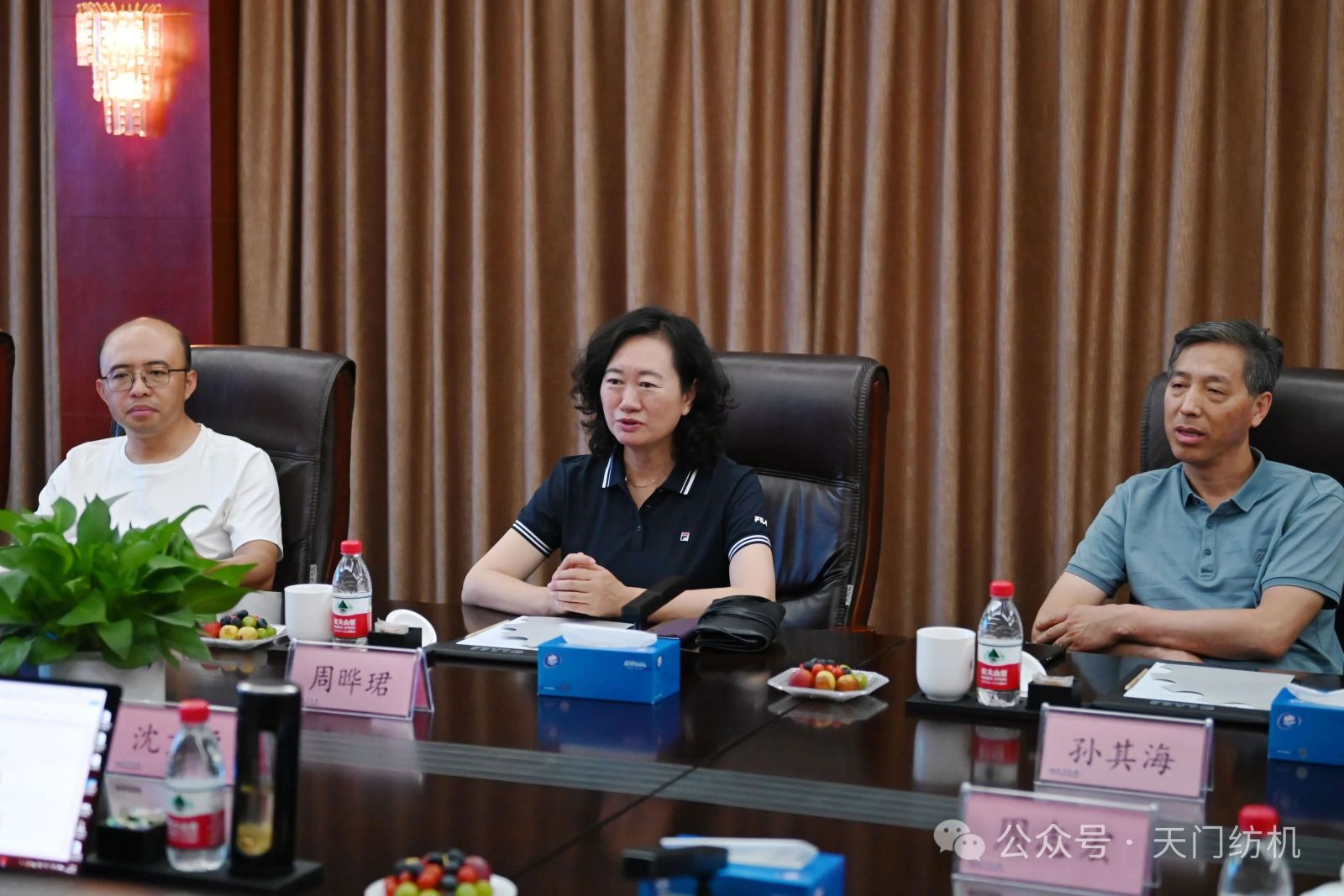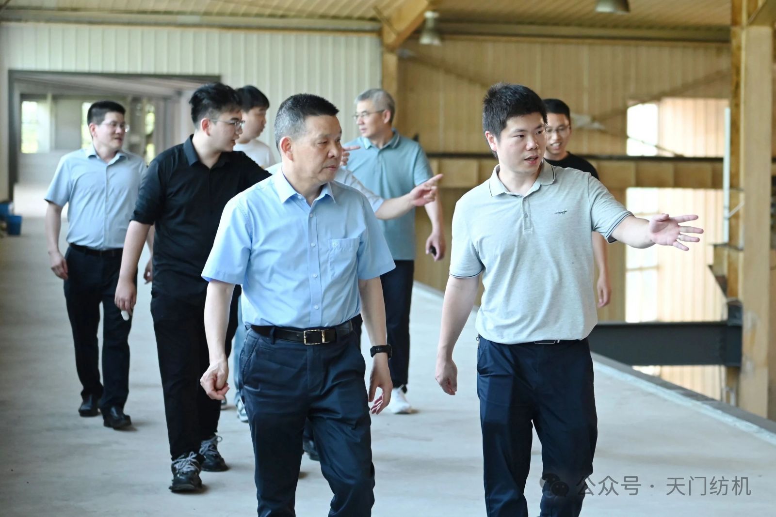 作為本次活動的支持單位,天門紡機盛情邀請了一批行業(yè)領(lǐng)袖和青年翹楚蒞臨公司指導(dǎo)交流。7月9日上午,無錫一棉原董事長周曄珺、中國紗線網(wǎng)副總裁孫其海、鐵門關(guān)星宇信達總經(jīng)理郭超、河南盛泰越南棉紡總經(jīng)理馬強強等貴賓蒞臨公司調(diào)研;當日下午,鄆城東盛總經(jīng)理劉顯豐、新疆智亞總經(jīng)理劉顯赫、福建云杉總經(jīng)理許立、廣東洪興實業(yè)股份有限公司營銷總監(jiān)柯楷楠、鄆城晨龍紡織總經(jīng)理何邦超等貴賓到訪公司。公司董事長沈方勇、總經(jīng)理焦倫進全程熱情接待。