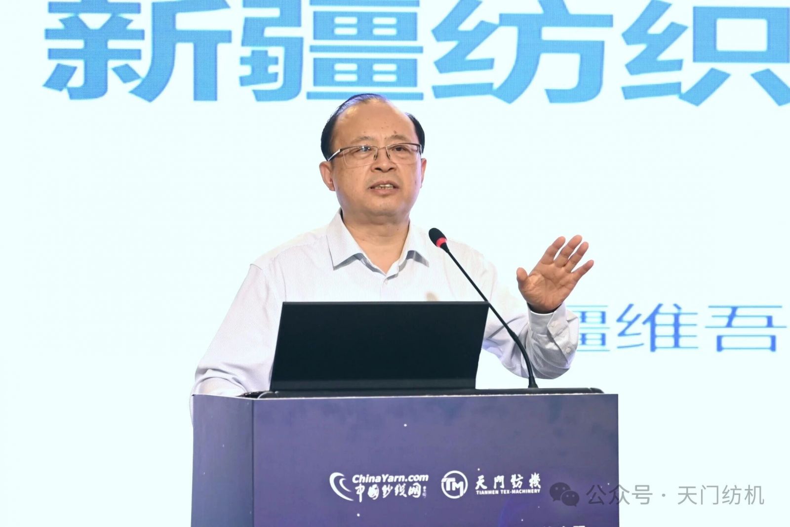 本次會(huì)議由天門紡機(jī)冠名,中國紗線網(wǎng)與新疆維吾爾自治區(qū)紡織工程學(xué)會(huì)共同主辦,全國政協(xié)委員、新疆維吾爾自治區(qū)棉花產(chǎn)業(yè)發(fā)展領(lǐng)導(dǎo)小組辦公室主任梁勇,新疆生產(chǎn)建設(shè)兵團(tuán)第三師圖木舒克市黨委常委、副師長(zhǎng)丁偉,天門紡機(jī)董事長(zhǎng)沈方勇,中國紗線網(wǎng)總編王果剛等400余位領(lǐng)導(dǎo)、專家及代表參加會(huì)議,同步開啟的在線直播超過1萬人收看。