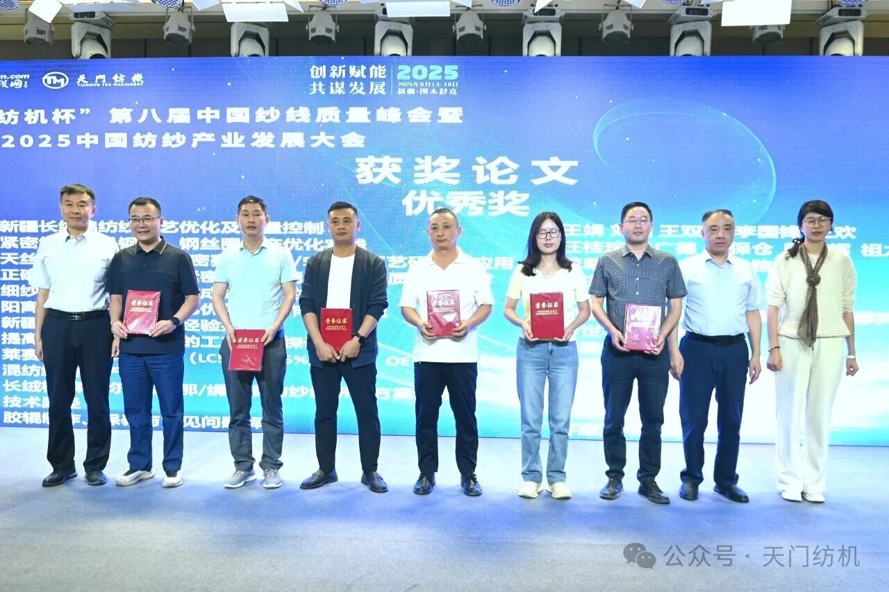 開幕式上,隆重舉行了“天門紡機(jī)杯”第八屆中國紗線質(zhì)量峰會(huì)獲獎(jiǎng)?wù)撐念C獎(jiǎng)活動(dòng),新疆維吾爾自治區(qū)紡織工程學(xué)會(huì)理事長(zhǎng)、新疆大學(xué)紡織與服裝學(xué)院院長(zhǎng)夏鑫,天門紡機(jī)總經(jīng)理焦倫進(jìn),中國紗線網(wǎng)總裁鞠彥軍為獲獎(jiǎng)作者頒發(fā)了證書和獎(jiǎng)金。
