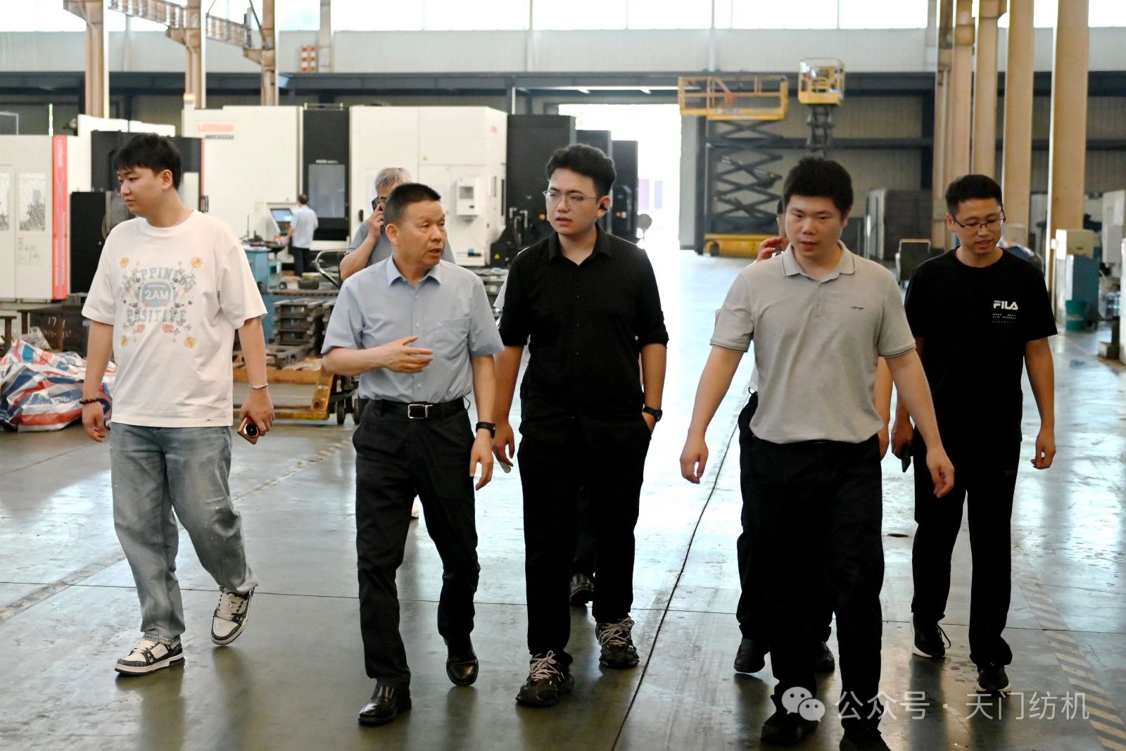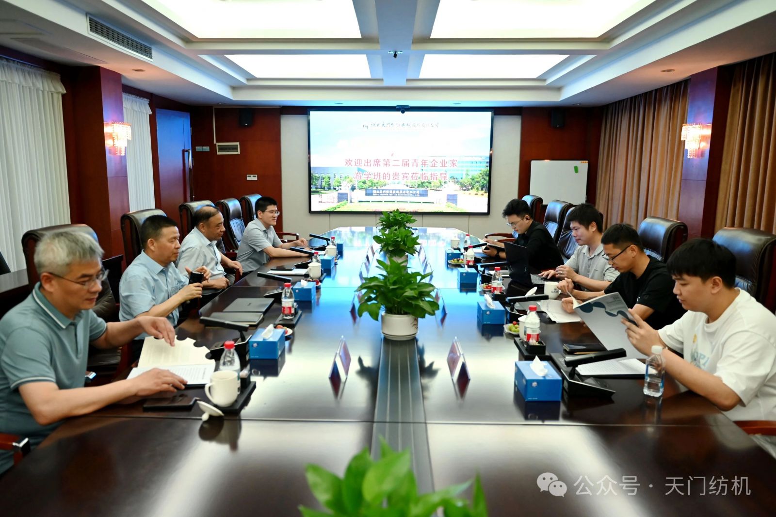 作為本次活動的支持單位,天門紡機盛情邀請了一批行業(yè)領(lǐng)袖和青年翹楚蒞臨公司指導(dǎo)交流。7月9日上午,無錫一棉原董事長周曄珺、中國紗線網(wǎng)副總裁孫其海、鐵門關(guān)星宇信達總經(jīng)理郭超、河南盛泰越南棉紡總經(jīng)理馬強強等貴賓蒞臨公司調(diào)研;當日下午,鄆城東盛總經(jīng)理劉顯豐、新疆智亞總經(jīng)理劉顯赫、福建云杉總經(jīng)理許立、廣東洪興實業(yè)股份有限公司營銷總監(jiān)柯楷楠、鄆城晨龍紡織總經(jīng)理何邦超等貴賓到訪公司。公司董事長沈方勇、總經(jīng)理焦倫進全程熱情接待。